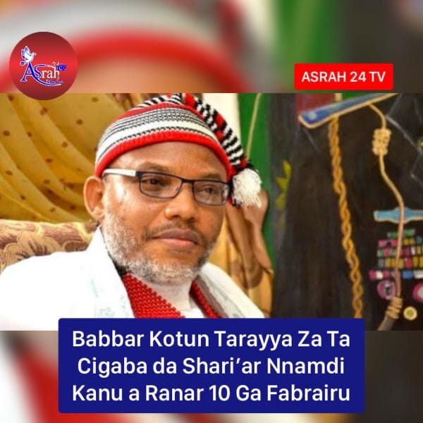 Babbar Kotun Tarayya da ke Abuja ta bukaci a gabatar da Nnamdi Kanu a gabanta don cigaba da shari’ar da gwamnatin tarayya ta shigar da shi kan zargin cin amanar kasa. Kanu, wanda shi ne jagoran kungiyar IPOB mai rajin ballewa daga Najeriya, zai ci gaba da fuskantar shari’a karkashin Mai shari’a Binta Nyako, wacce a baya ta nesanta kanta daga sauraron karar.